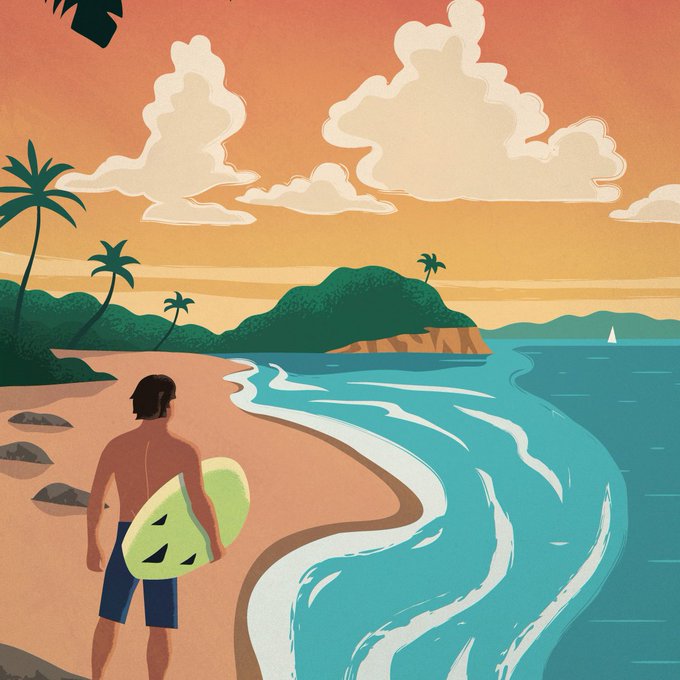 Hey there, I’m Alex a freelance illustrator that enjoys working on editorials, book covers, posters, & more! I love illustrating palm trees, beaches, & sailboats! Check out my work! #portfolioday #artistsontwitter