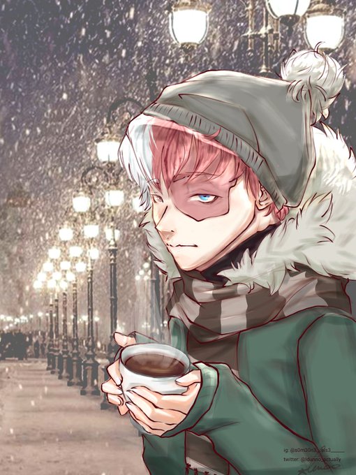 Christmas gift for friend #wip What is warmer Coffee or hugging? 💞 #myheroacadenia #Todoroki #ChristmasIsComing #winterdrawing