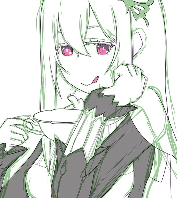 エキドナお茶会🍵お絵描き (線入れと色塗り) #リゼロ #rezero #エキドナ #お絵描き #イラスト