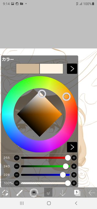 @titei_Reborns 10分くらいでパパっとぬったから色薄めで影適当だけど顔付近の髪色明るくなってるのわかる? 髪色スポイトして、その色の明るい色でエアブラシ塗ってるんよ あと光塗る時にレイヤーを加算・発光ってのにするとこんな光る感じに塗れるよ
