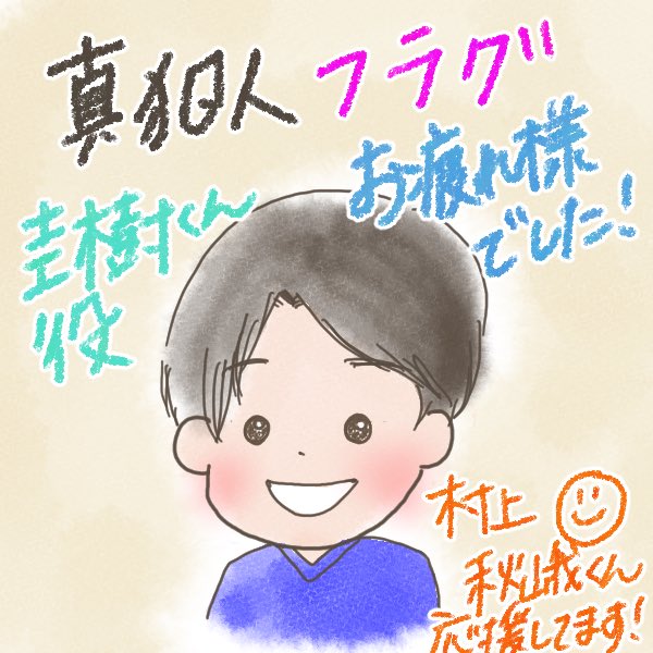 真犯人フラグ考察のuriさん(@anabansawa )のイラストを描かせて頂いたインスタ投稿に、あの真犯人フラグ出演俳優圭樹くん役の村上秋峨くんからいいね♡コメントいただきましたーーーーー!!!!!!秋峨くん考察動画ママと一緒に見て下さってたとの事!!!!!ううううううううuriさぁぁあぁあーーーーーーん