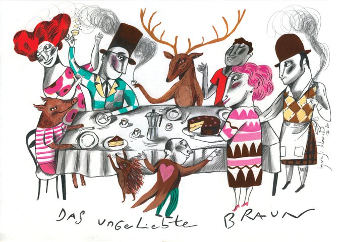 ARA CALMA I MOLTA CURA PERÒ HO TORNAREM A VIURE! Amb ganes de recuperar els àpats i les trobades amb la família i amb els amics. Detall d'una il.lustració per a un projecte sobre els colors amb l'amiga Mechthild Rex-Najuch.