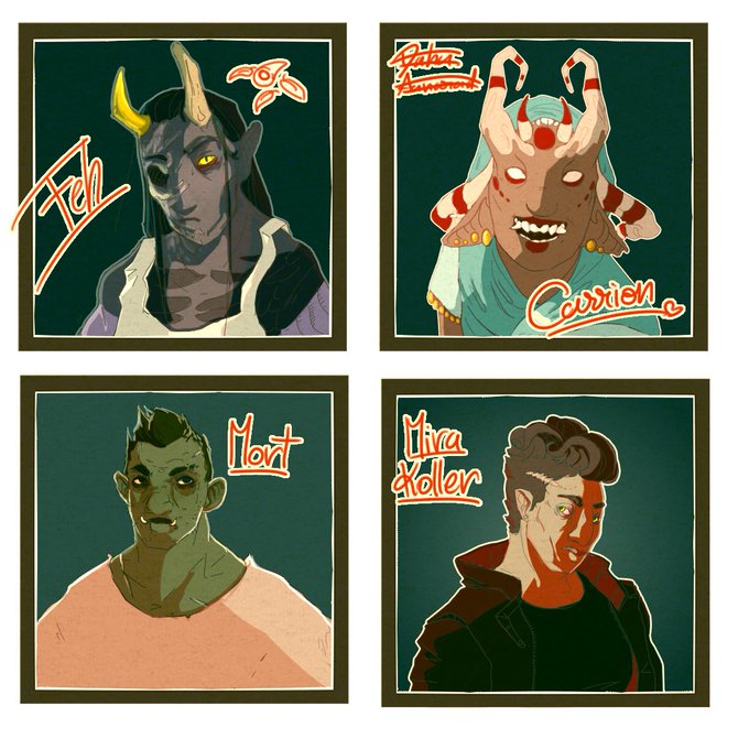 some portraits of #Dnd and #vtm characters. The half-orc Mort belongs to @LeeUshy The rest are my terrible children, ready mess with any dm's game . Commissions open so If you want a Portrait like that of your terrible child dm me!