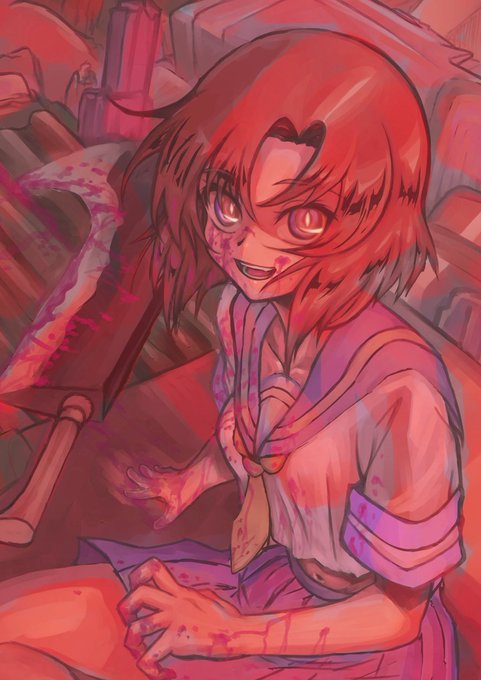 ゴミ山でにこやかに笑う竜宮レナちゃんです。 #ひぐらしのなく頃に #ひぐらし卒