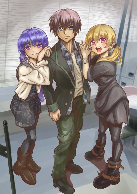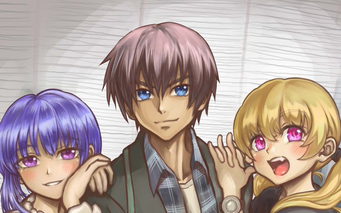 JK梨花ちゃんと沙都子に挟まれ動揺するも決め顔で写真に写る圭一 元ネタ↓ https://t.co/GYxvbZTIeb #ひぐらしのなく頃に #ひぐらし卒