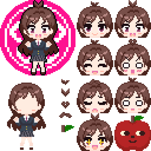 64x64 辻野あかり アホ毛、表情、りんごろう差分 あかりんごのアホ毛はかわいいなぁ #ドット絵 #辻野あかり #デレマス