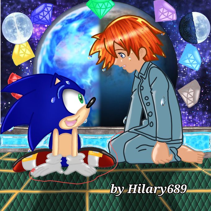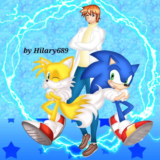 With the permission of the author that has draw this image , here my redraw of this image with a little friend near to he.All the rights going to @Tibatuka and SEGA for the characters, only the draw on the left is made by myself