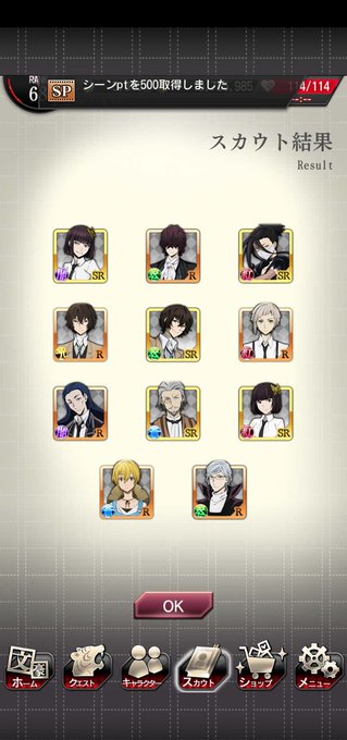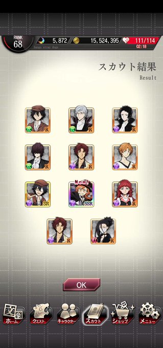 44連スカウト結果 ↓ newの芥川くんが来てくれました!! 中也は出てくれたのは嬉しい...嬉しいんだけどそっちじゃない😭 #文マヨ #bungomayoi