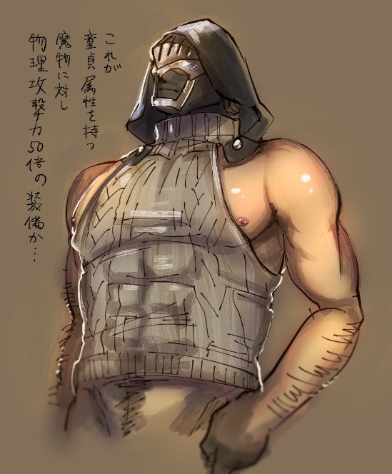 ちなみにこれが500MBもの重さがあったというバナーの元絵です 血糊や刃こぼれなどの剣のディティールが上手くできてお気に入りです。家の窓1か所描き忘れてることは気にしないでいただきたい!