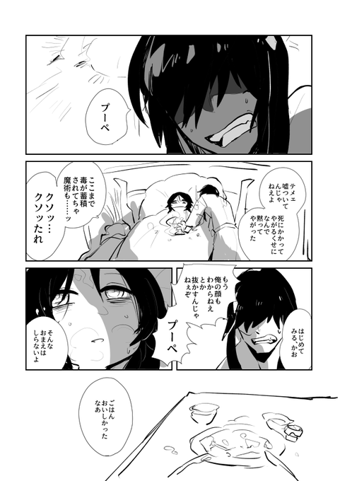 少年王と従者の話 カラー付きがプーペ(傀儡王)、カラーなしメカクレ男アディンがその腹違いの兄であり宰相であり従者(?) 宰相は常に西の空って言う風俗店に通ってる(???)