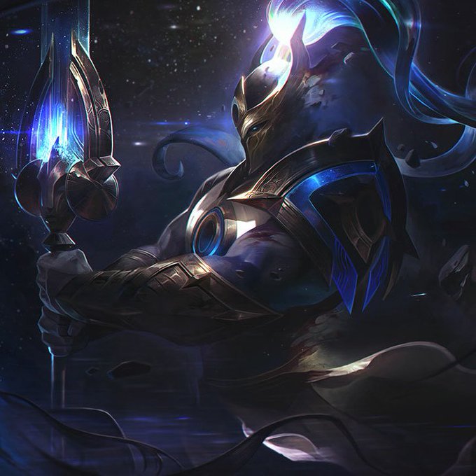 Cosmic defender Xin Zhao can have his face fully obscured by a helmet in the splash but for Pantheon, they have to make sure that the face is nice and visible, blue eyes, beard, and everything. I want to know WHY riot is so allergic to just covering his face with a helmet.