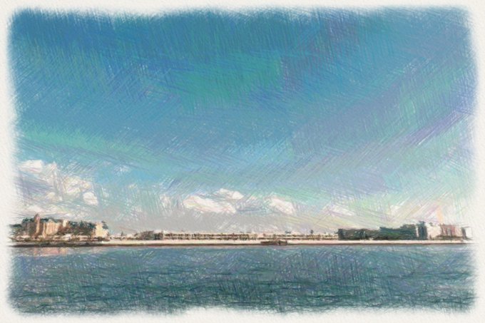 向こうは夢の国🐭 #夢の国 #ディズニー #写真好きな人と繋がりたい #風景 #淡い #空 #フィルム #葛西臨海公園 #撮影 #イラスト