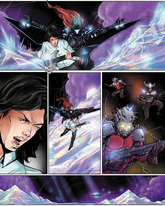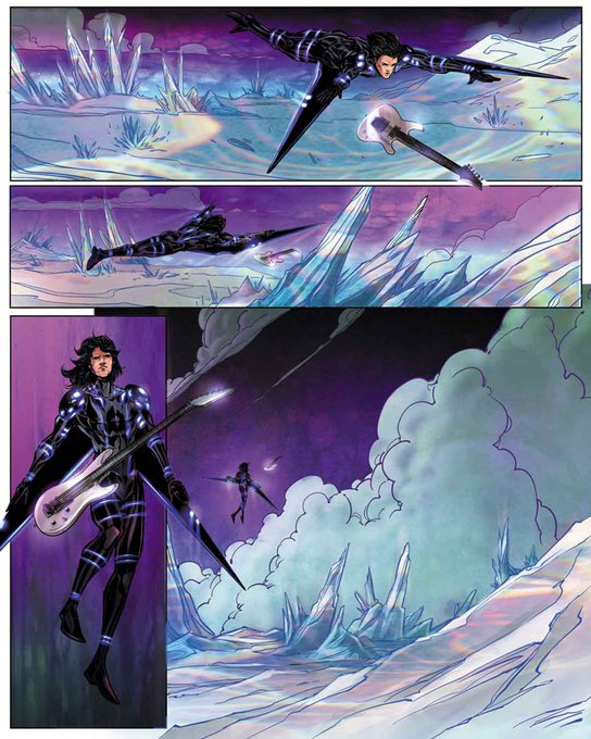 Take a peek inside @chickenfootjoe Joe Satriani's CRYSTAL PLANET issue #3 with pencils and inks by Richard Friend & color by Carlos Cabrera; CP will be hitting comic book shops, soon! https://t.co/2aa186NQKx