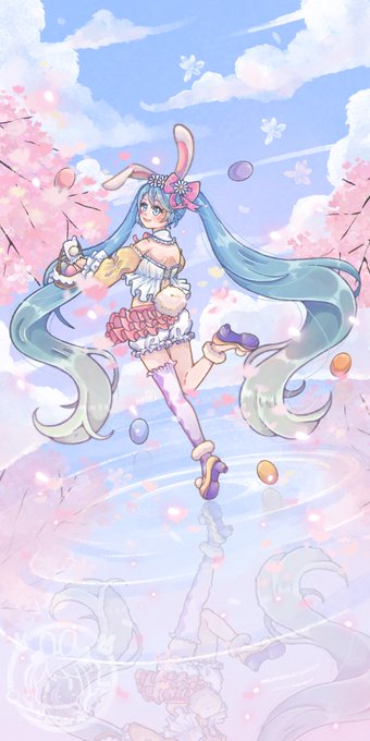A spring bunny miku fanart for a huge group collaboration on Instagram that I’ve done a few days ago, I’m sooo excited that finally we can post it now 💕💕