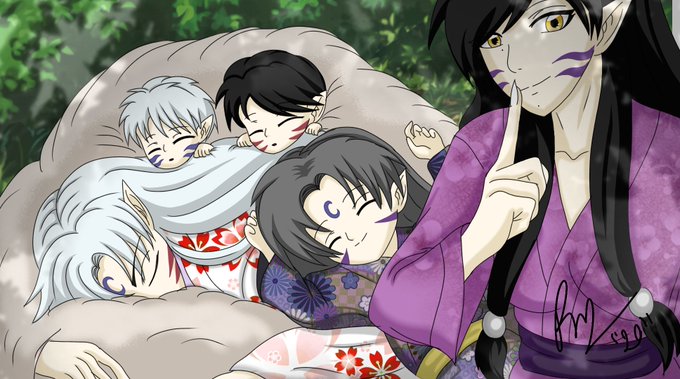 Fluffy nap on the sun. With sesshomaru and my oc kuroi plus their oc son Tsukimaru and my version of full demon towa and setsuna.