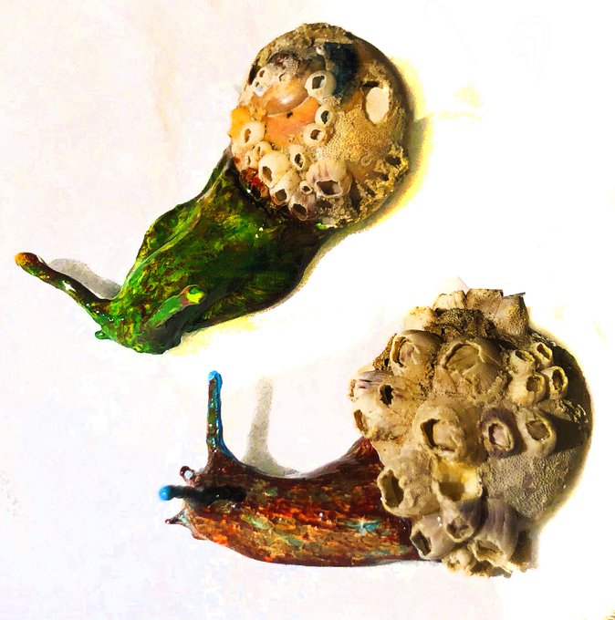Sculpted more friends, some tiny tiny snails and a couple of deep sea snails whose shells have grown barnacles.