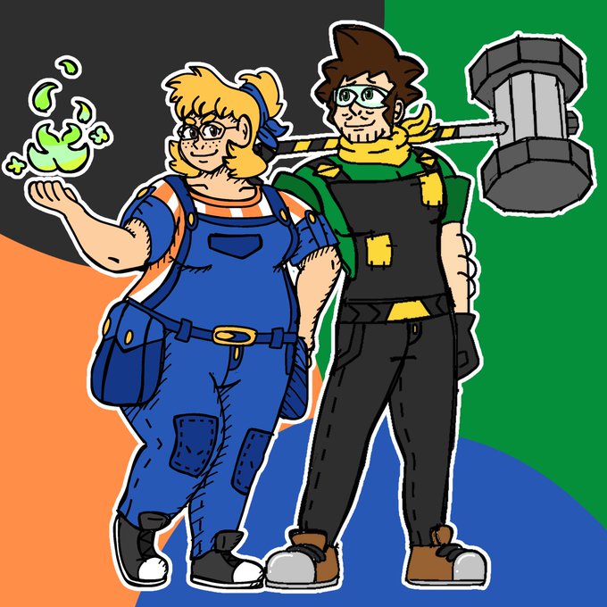I have a bunch more ocs than shown here, but the green and orange ones (Hammond and Evelyn) are my favs and most drawn by a BIG margin lmao