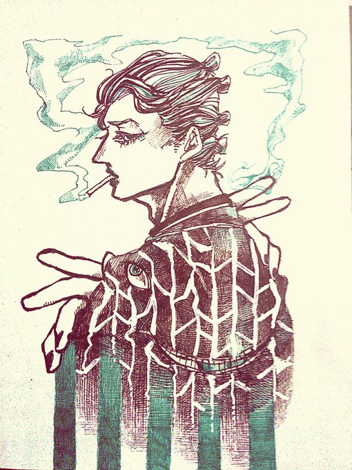 ジョジョキャラ1発書きの時は線を太くして強弱つけて一発で引けない部分を誤魔化してた