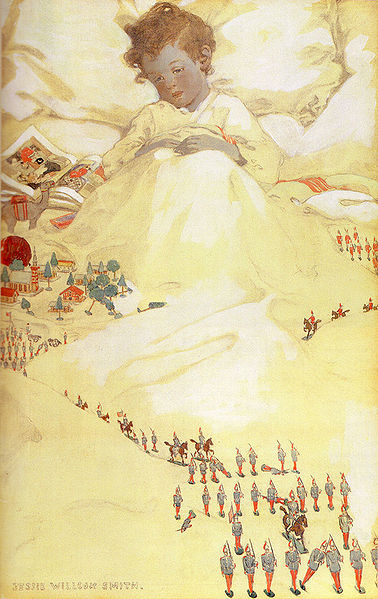 Illustration of The Land of Counterpane (poem by Robert Louis Stevenson) by Jessie Willcox Smith