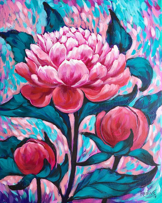 White Peony — original painting by Irina Redine, framed acrylic handmade painting, gift idea from my #etsy shop: https://t.co/vIYRIuVbDT
