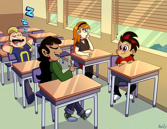 Meet my darling kids from the sci-fi high school comedy webcomic I'm working on called Zyra Slash! Starring a sweet baby alien lizard, a badass hippie, the jock from every 2000's movie ever, and sarcastic moody punk chick
