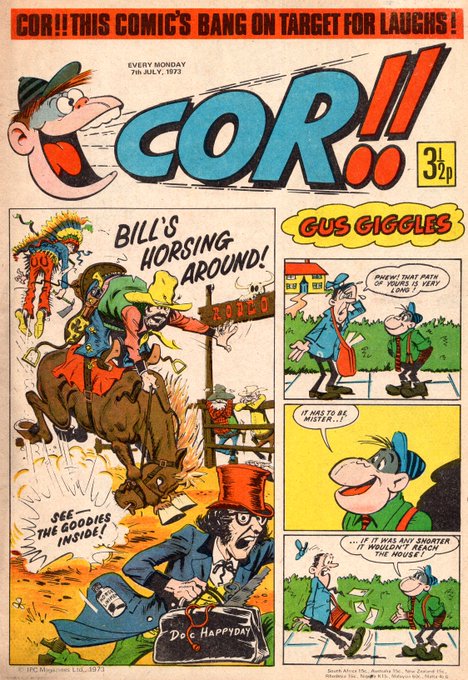 Here’s a selection of covers of IPC comics from my collection, all with today’s date in 1973. If I had to choose my favourite one, I’d pick COR!! because of The Goodies art by Joe Colquhoun. He is best remembered for his ‘serious’ strips but I really like his humorous style too.