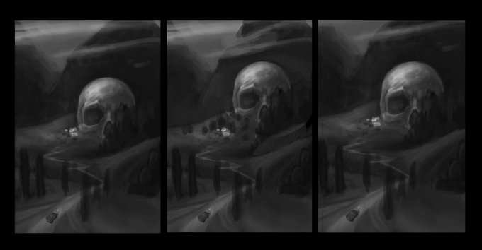 #wip #environnement #gemdev #skull #landscape #landscapepainting #blackandwhite