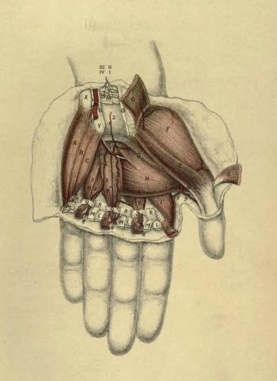 Dissection of the palm of the hand from 'Dissections illustrated' - Charles Gordon Brodie 1900