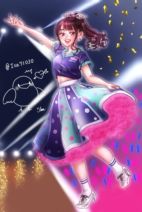 間違いなく会場全員が恋したレトロポップな水玉ワンピ、とっても可愛く描けたかなって…🤦♀️💘 そしてめちゃくちゃ沸いたインマイとLove Fight!ちゃんの衣装最高だった…(手元のポイント、気付いてもらえると嬉しいなぁ🥺✨) (縦向きver)#水樹奈々