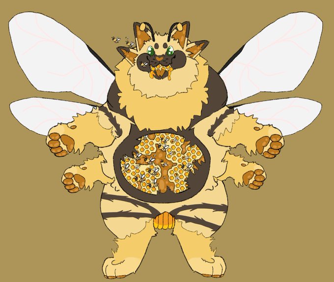 My newgal named Beezu!! She's a cat with bees. I got the idea from remembering a old pic of a cat with bees in it and the caption saying "Its how a cat purrs". Then boom a cat-bee hive. #furryart#furrys