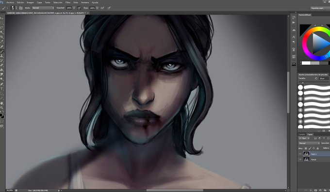 Me estoy entreteniendo en pintar encima de un dibujo que hice hace un año, y con 10 minutos encima I'm already happy