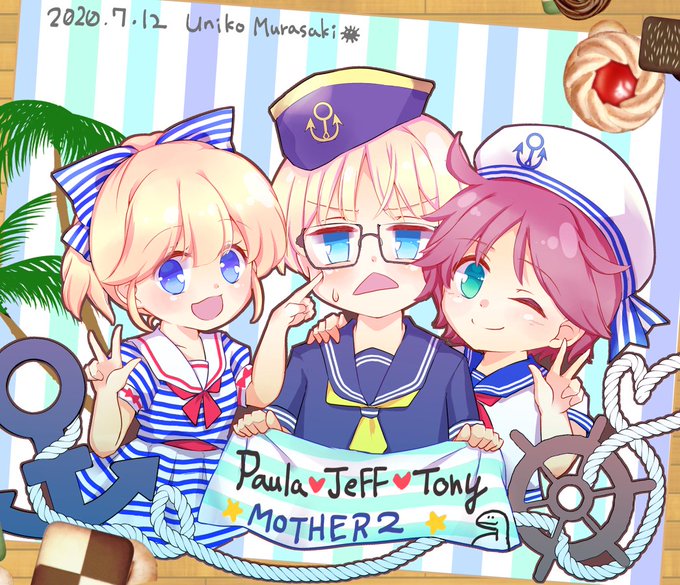 マリンなのに暑く苦しい #MOTHER2 #ジェフ #ポーラ #トニー #プー #マリンルック #夏 https://t.co/QFVZ64NVZh