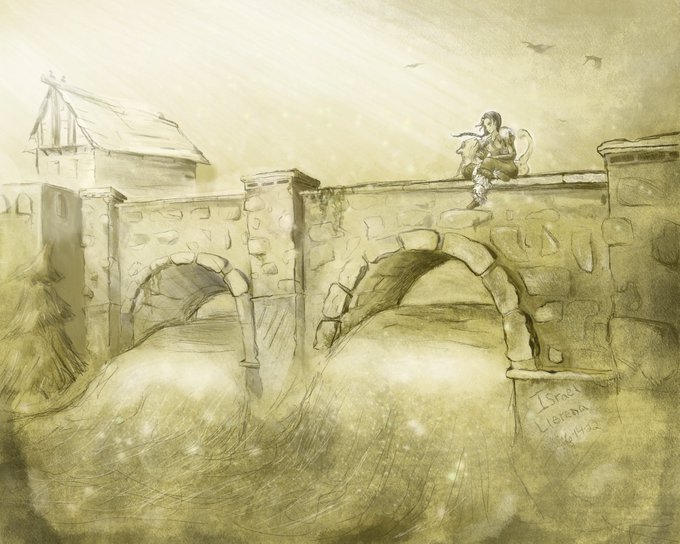 I edited the position to be a sitting position on the bridge + birds. I think it looks a lot better. #artmoots #digitalart