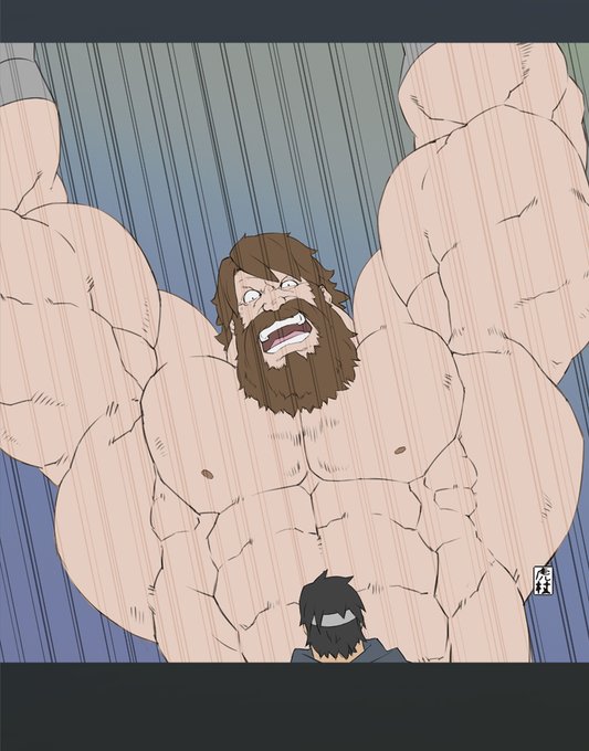 闘い。 濃いめの線画にしてみた。 #筋肉 #muscle