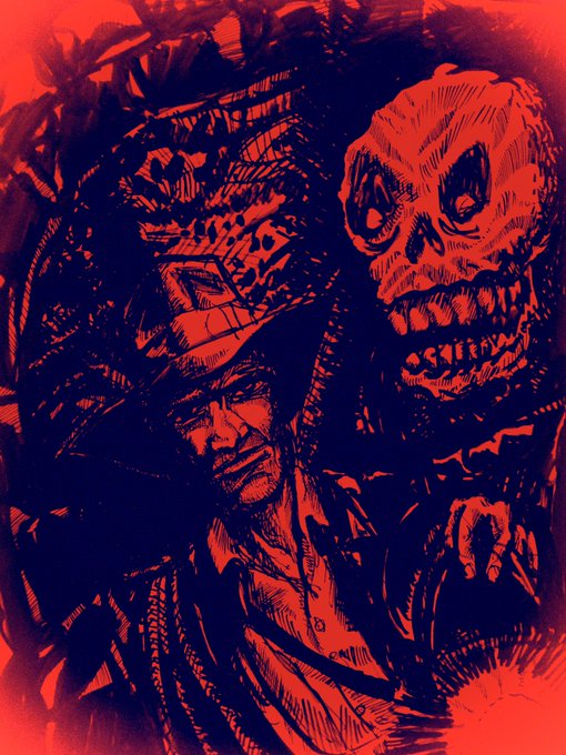 Tonight’s time killer until TERRIFICON 2022 is a sharpie marker doodle Indiana Jones on red paper.