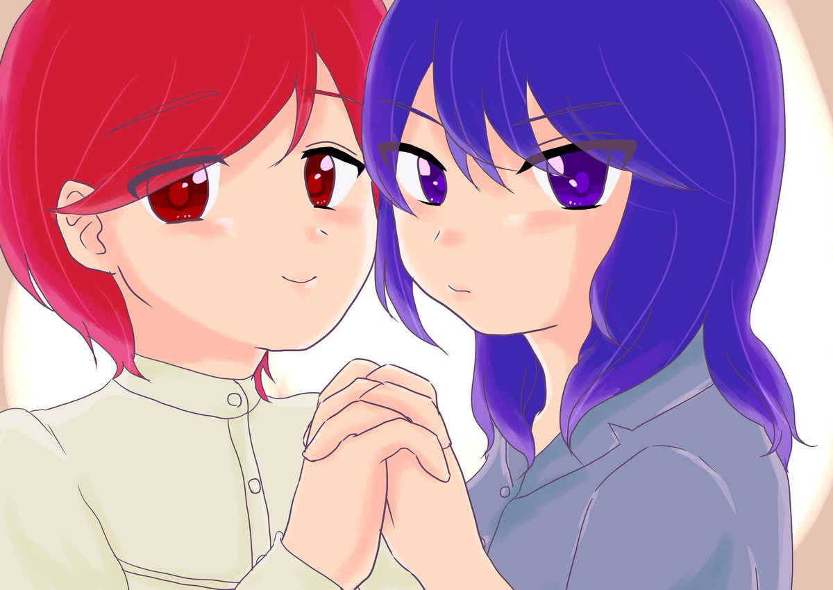 たぶん去年?描いたまぐちゃん(赤い方)とネリノちゃん(青い方) #創作 #オリキャラ #創作イラスト #創作キャラ