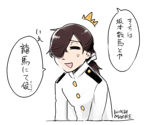 [えふご] #自分の顔がプリントされているTシャツを着ている坂本龍馬 #ダサセーターで迎えてくれる坂本龍馬