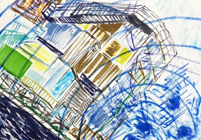 担当している90のおばあちゃんに休日何してるのと言われ、絵描いてますねと言ったら飾るから持ってきて風景画がいいなあと言われたんで描きました風景画。花見と花火を贈るって粋かなと思いましてね。花火も描きました。明日お渡しする予定です。感想もらったらツイートします。