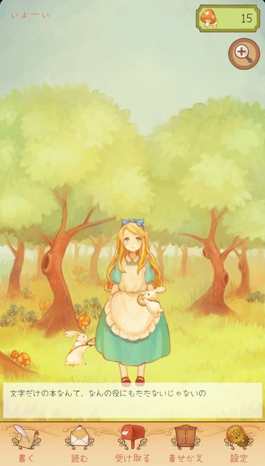 @yuki_echoes 「アリスと不思議なお手紙」なんていかがでしょうか? 基本は文通アプリですが、ホームにいるアリスちゃんを着飾ったりもできるんですよ!