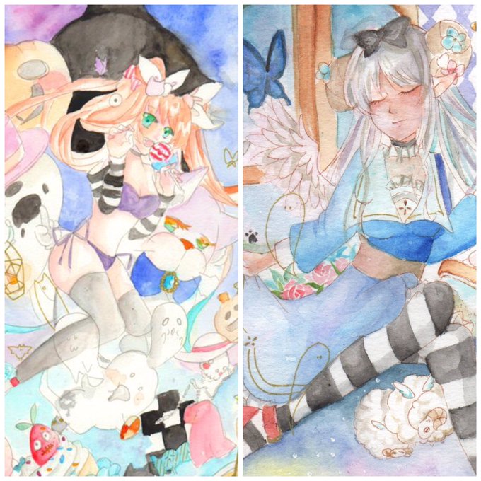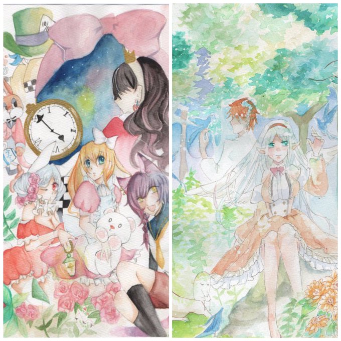 透明水彩でオリジナルの女の子達を描いてます(∩´∀`∩)