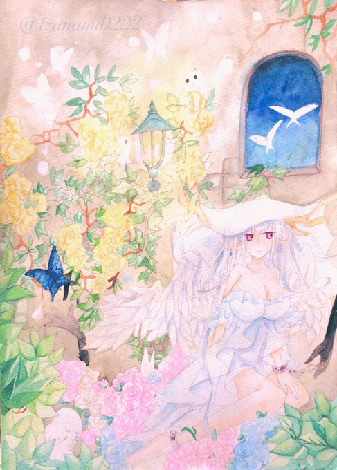 透明水彩で女の子の絵を中心に描いています