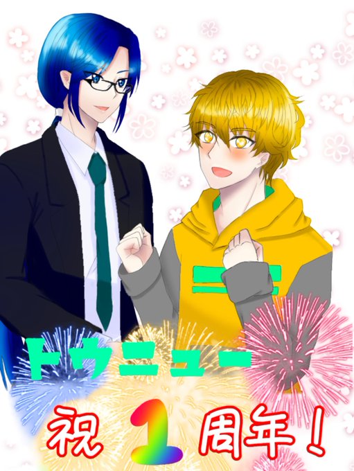 トウニュー一周年記念イラスト完成~~!! 改めて、おめでとうございます🎉✨😆✨🎊 トウニューの皆が大好きです😍💓💓 いつもありがとう!って気持ちでいっぱいです! グッズも本当に感謝です😭 これからもずっとトウニューを応援していきます!!! #トウニュー #トウニュー絵 #トウニュー一周年