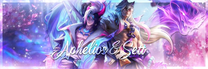 Spirit Blossom Aphelios & Spirit Blossom Sett header that is FREE to use!🌸 I just had to make a header of these two cuties. So here they are, Sett and his mooncake💜💙