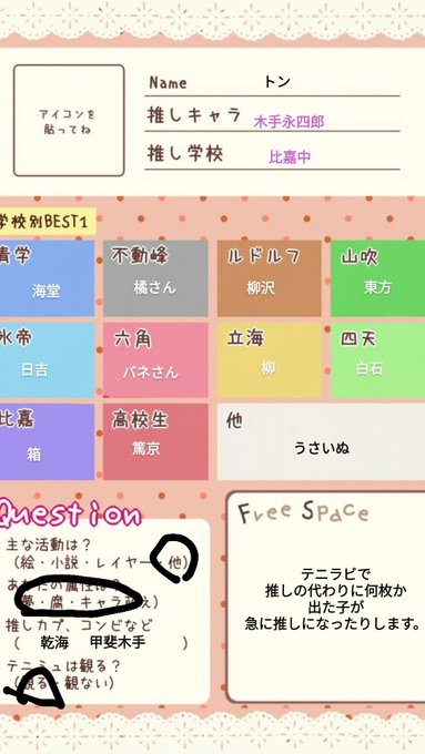コラ画像を作ったりお絵描きをしてみたり架空のイベントに参加してる人です。同担拒否無いです!