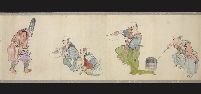 The item featured on our cover is a series of 3 finely illustrated mid-Edo emakimono depicting cockfighting