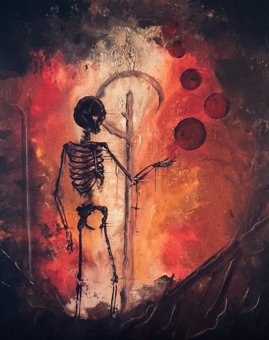 For my newest skelly painting, I asked my son to paint the background.