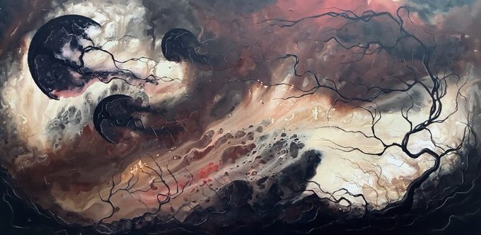 I blended the colors of the earth for this new, surreal, dark painting...