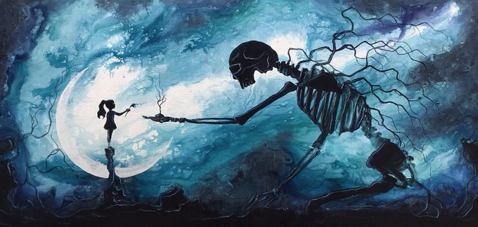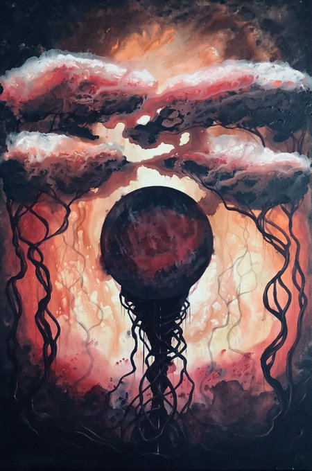 For this rather large painting, I imagined the earth claiming mother Luna...