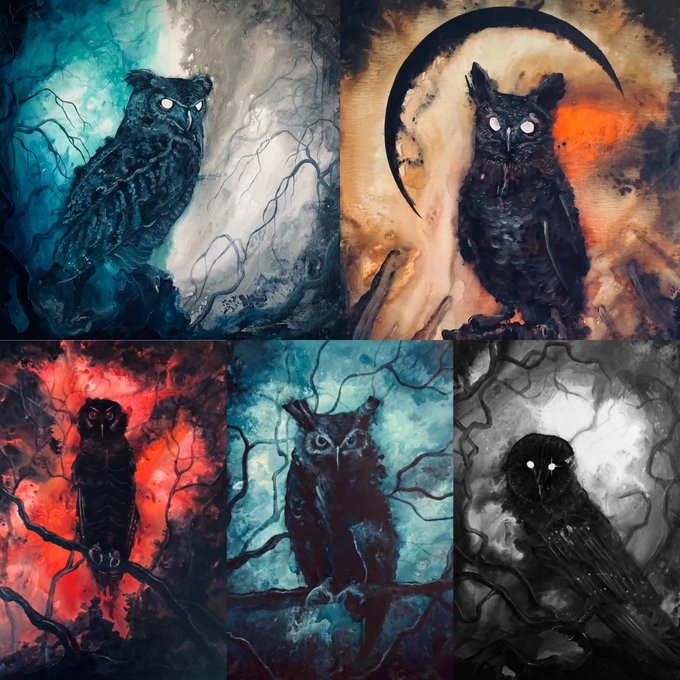 I've finally finished my series of haunted owl paintings.