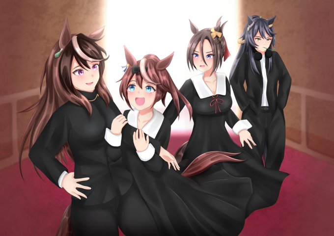 #今月描いた絵を晒そう オリジナルの和装バニー娘と、秀知院学園制服姿のウマ娘生徒会メンバー